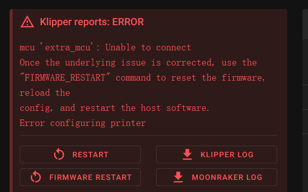 Concurrently, the blue LED indicator on the adapter board will remain off. After several minutes, an "Extruder MCU Connection Failed" error will be reported.